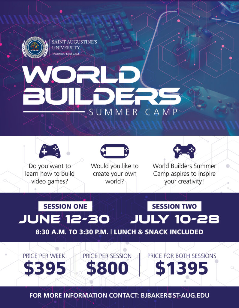 Do you want to learn how to build video games? Would you like to create your own world? World Builders Summer Camp aspires to inspire your creativity. World builders is a project-based learning camp that invites students to take on the option of building a new game or a model society. The summer camp will be a steam-based day camp.
